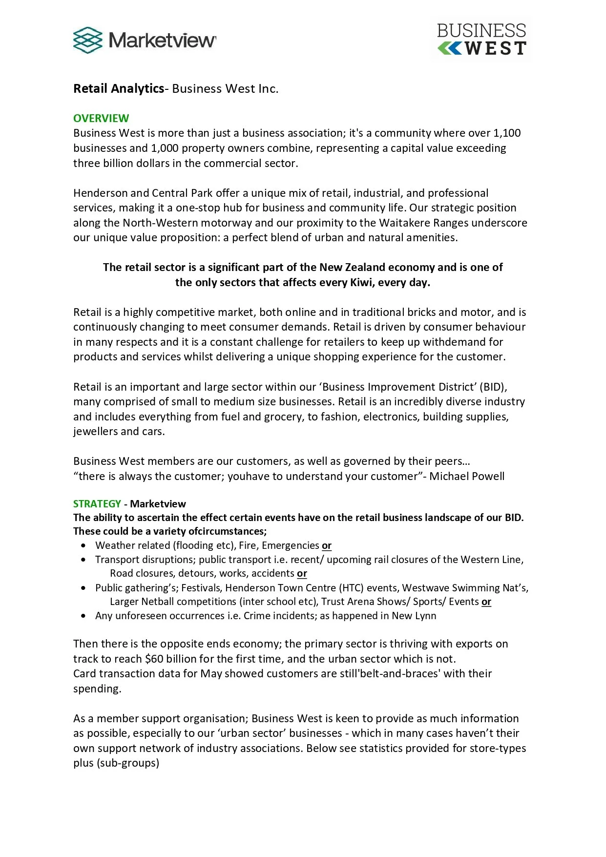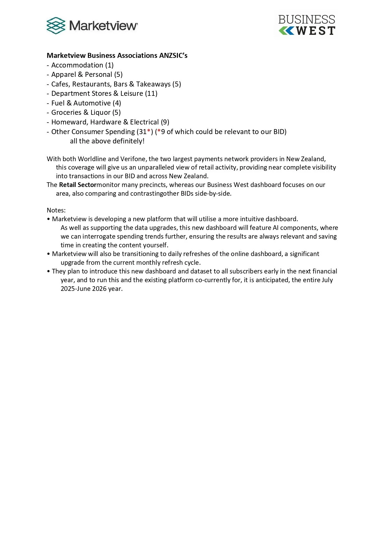 These reports are built from Worldline electronic card transaction data and show key trends in spending, transactions, customer origins, and sector performance across Business West, the wider Auckland region, and nationally.